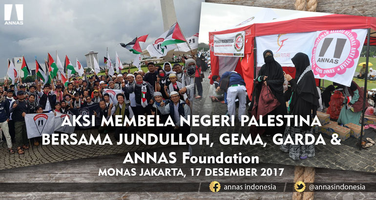 Sadar, kita tidak bisa berangkat ke Palestina membantu mereka, tapi sebagai saudara kita tidak boleh tinggal diam walaupun negri kita jauh dengan mereka, kita harus melakukan usaha bersama - sama, oleh karena itu Jundulloh, GEMA, GARDA dan ANNAS Foundation bersama komponen Islam lainya perlu bergerak dengan seluruh kekuatan baik dana, tenaga, waktu, keringat untuk berangkat ke Monas Jakarta yang di prakarsai MUI Pusat. (17/12/2017)