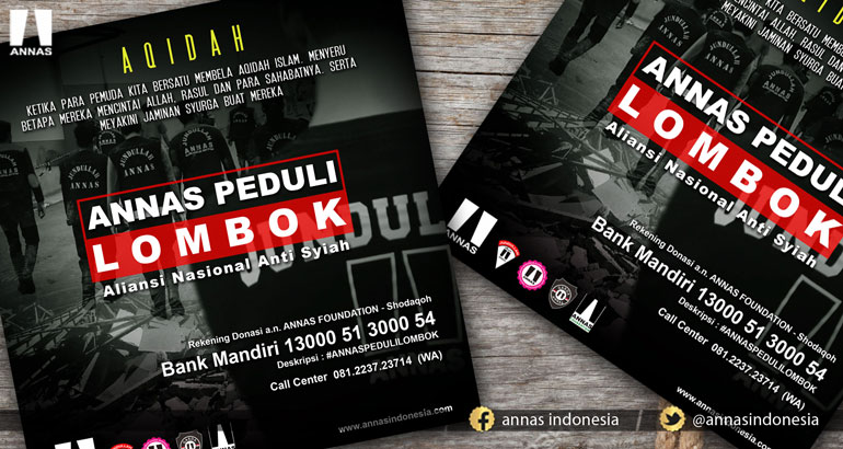 Tim Relawan I Aliansi Nasional Anti Syiah (ANNAS) Peduli Lombok akhir Agustus - awal September 2018 siap terjun membantu warga Lombok dalam menghadapi bencana yang lebih besar lagi yakni bencana aqidah dari pengaruh aliran-aliran sesat terutama syiah yang dibungkus dengan mengatasnamakan bantuan kemanusiaan.