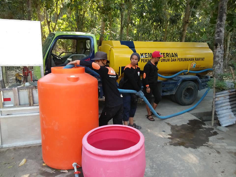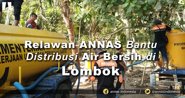 Tim relawan ANNAS bekerja sama dengan Dinas PUPR Desa Tanjung Kecamatan Tanjung Kabupaten Lombok Utara yang menyediakan mobil tanki air untuk mendistribusikan air bersih ke warga lewat tandon-tandon air yang tersedia.
