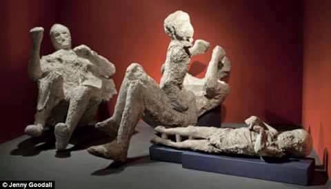 Pemandangan yang dilihat para arkeolog2 dunia itu sungguh menakjubkan. Fosil2 utuh dan membatu dari tubuh manusia tampak awet. Posisi2 mereka ada yang sedang berhubungan badan, ada yang sedang jongkok, bahkan ada yang sedang berusaha bangun dari tidurnya. Dari fosil2 yang sedang berhubungan badan ini, tampak beberapa dari mereka mempunyai jenis kelamin yang sama (Homoseks). Ada juga yang sedang berhubungan dengan anak2. Raut muka mereka masih tergambar detail seperti manusia yang masih hidup.