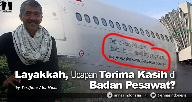 Terlepas alasan di atas, hendaknya pihak Garuda Indonesia berpikir jernih atas munculnya ide penulisan tersebut. Layak atau tidak layakkah penulisan tersebut di badan pesawat? Benarkah tulisan tersebut menggambarkan apresiasi dari petugas dan para jamaah calhaj secara keseluruhan? Patut diduga, jangan-jangan hanya ingin ABS (Asal Bapak Senang) dari segelintir oknum Garuda Indonesia.