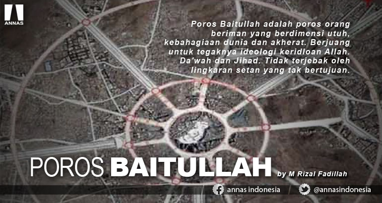 Poros Baitullah adalah poros orang beriman yang berdimensi utuh, kebahagiaan dunia dan akherat. Berjuang untuk tegaknya ideologi keridloan Allah. Da'wah dan Jihad. Tidak terjebak oleh lingkaran setan yang tak bertujuan. Berputar-putar tanpa jalan keluar. Musuh iri dengan gaya hidup iman. Tapi Allah menyuruh biarkan mereka dalam kebingungan. "Dzar hum ya'kuluu wa yatamatta'uu wa yulhihimul amal" (Biarkan mereka hidup makan makan, bersenang senang dan berangan angan).