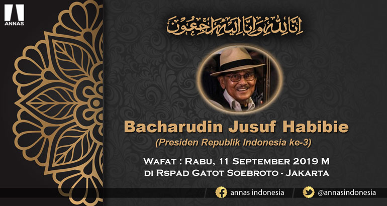 Keluarga Besar Aliansi Nasional Anti Syiah ( ANNAS ) Pusat, dengan ini turut berduka cita atas wafatnya Bpk. BACHARUDIN JUSUF HABIBIE, Presiden Republik Indonesia ke-3 pada hari Rabu, 11 September 2019 di RSPAD Gatot Soebroto - Jakarta.