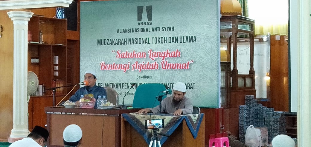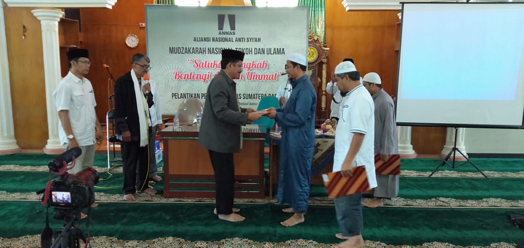 Bukitinggi. Usai pengukuhan kepengurusan Aliansi Nasional Anti Syiah (ANNAS) Wilayah Sumatera Barat oleh Ketua Umum ANNAS Pusat, K.H. Athian Ali M. Da’i, Lc, M.A., di Masjid Jami’ Tigo Baleh Jl. Tigo Baleh, Pakan Labuh, Kecamatan Aur Birugo Tigo Baleh, Kota Bukittinggi, Sumatera Barat, Ahad (15/12/2019), Ketua ANNAS Wilayah Sumatera Barat, Abdul Latif, Lc. M.Ag membacakan 5 (lima) butir pernyataan sikap.
