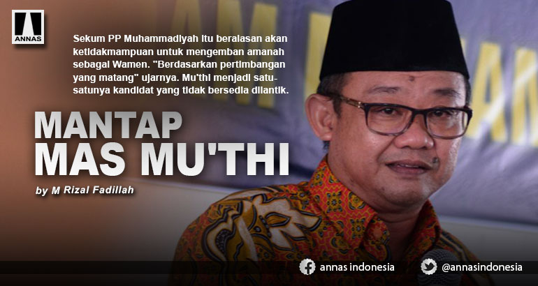 Pilihan Mas Mu'thi tentu disikapi beragam, namun warga Muhammadiyah dapat menilai bahwa sikap ketidaksediaan untuk menjadi Wakil Menteri itu sangat difahami dan patut diapresiasi.