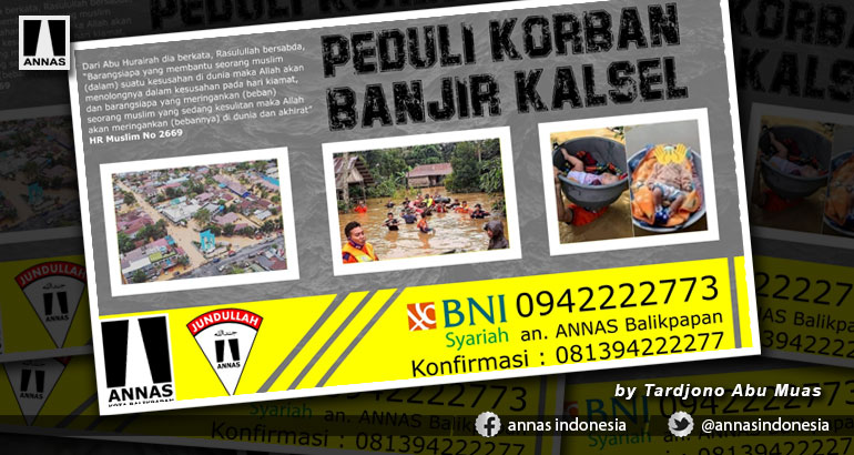 Untuk ikut meringankan beban para korban banjir di Kalsel, menurut Sekretaris Aliansi Nasional Anti Syiah (ANNAS) Daerah Balikpapan, Ust. Purwanto yang berhasil dihubungi melalui sambungan selularnya mengatakan, bahwa relawan ANNAS Daerah Balikpapan siap terjun langsung di lokasi bencana untuk membantu para korban banjir.