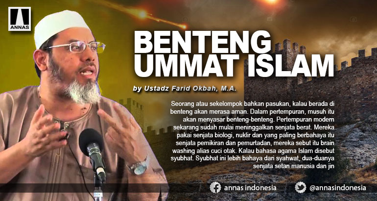 Seorang atau sekelompok bahkan pasukan, kalau berada di benteng akan merasa aman. Dalam pertempuran, musuh itu akan menyasar benteng-benteng. Pertempuran modern sekarang sudah mulai meninggalkan senjata berat. Mereka pakai senjata biologi, nuklir dan yang paling berbahaya itu senjata pemikiran dan pemurtadan, mereka sebut itu brain washing alias cuci otak. Kalau bahasa agama Islam disebut syubhat. Syubhat ini lebih bahaya dari syahwat, dua-duanya senjata setan manusia dan jin,