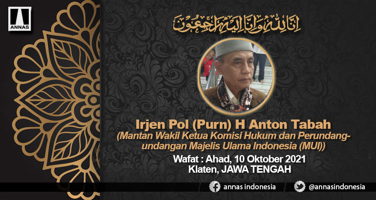 Keluarga Besar Aliansi Nasional Anti Syiah (ANNAS) Pusat, dengan ini turut berduka cita atas wafatnya Irjen Pol (Purn) H Anton Tabah, (Mantan Wakil Ketua Komisi Hukum dan Perundang-udangan Majelis Ulama Indonesia (MUI)), pada hari Ahad, 10 Oktober 2021, Klaten, JAWA TENGAH.