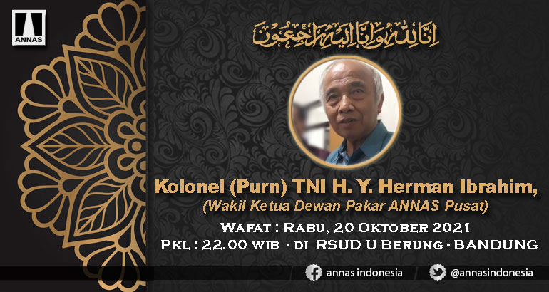 Keluarga Besar Aliansi Nasional Anti Syiah (ANNAS) Pusat, dengan ini turut berduka cita atas wafatnya Kolonel (Purn) TNI H. Yeyet Herman Ibrahim, (Wakil Ketua Dewan Pakar ANNAS Pusat), pada hari Rabu, 20 Oktober 2021, Pukul 22.00 WIB, di RSUD Ujung Berung - BANDUNG.