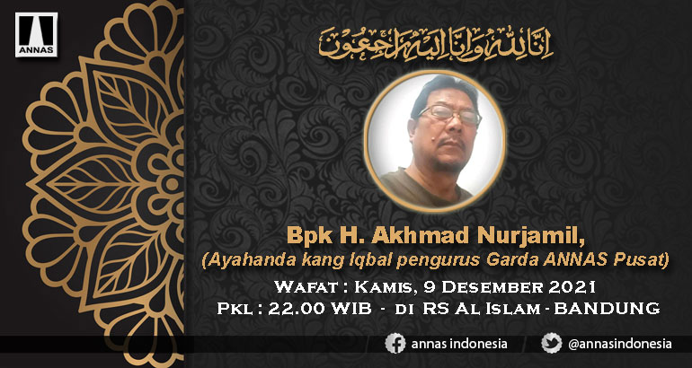 Keluarga Besar Aliansi Nasional Anti Syiah (ANNAS) Pusat, dengan ini turut berduka cita atas wafatnya Bpk H. Akhmad Nurjamil, (Ayahanda kang Iqbal pengurus Garda ANNAS Pusat), pada hari Kamis, 9 Desember 2021, Pukul 22.00 WIB, di RS Al Islam - BANDUNG.