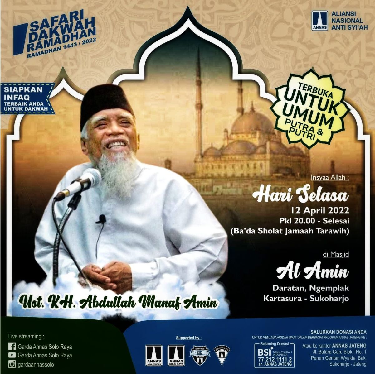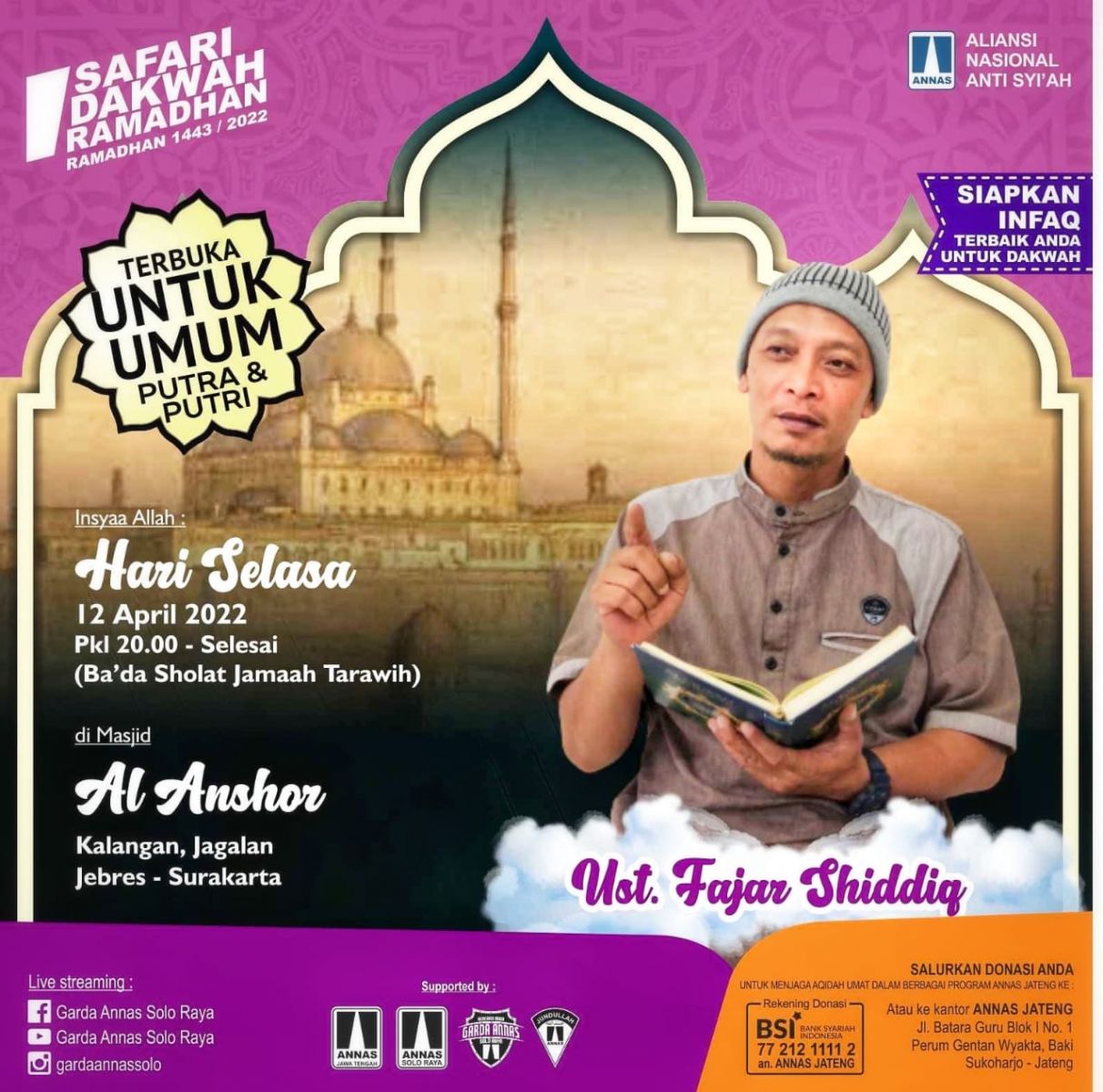 Solo. Aliansi Nasional Anti Syiah (ANNAS) Wilayah Jawa Tengah (Jateng) kembali menggelar program Safari Dakwah Ramadhan (SDR) 1443H/2022 sebagaimana gelaran SDR program tahun lalu.