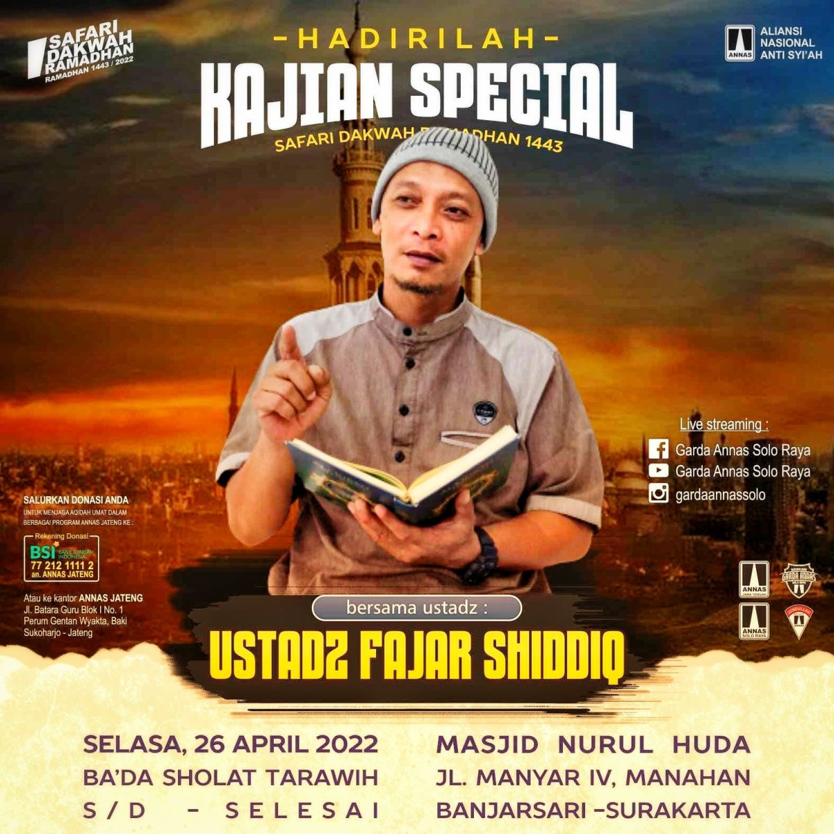 Solo. Aliansi Nasional Anti Syiah (ANNAS) Wilayah Jawa Tengah (Jateng) kembali menggelar program Safari Dakwah Ramadhan (SDR) 1443H/2022 sebagaimana gelaran SDR program tahun lalu.
