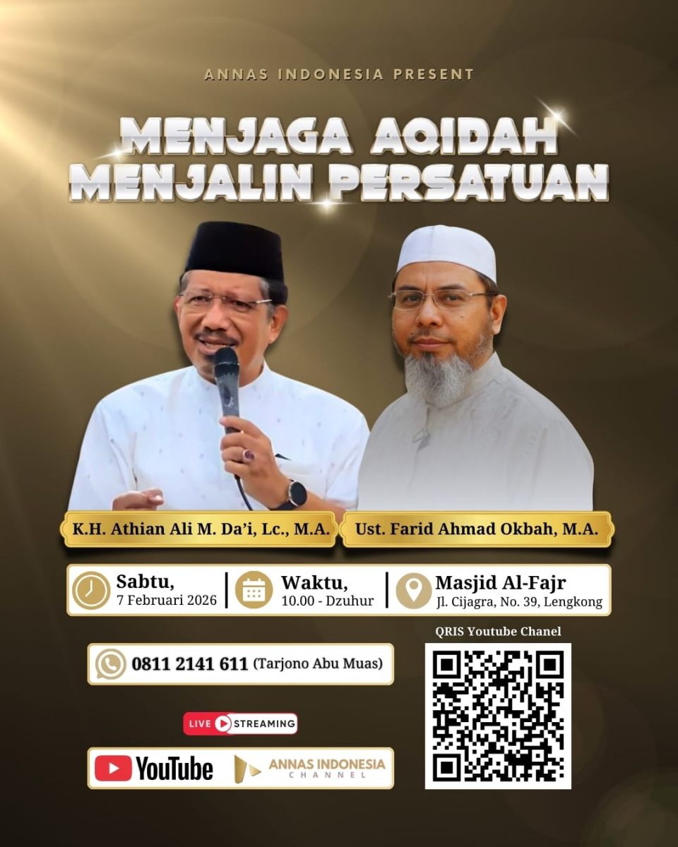 Hadirilah kajian spesial yang akan membahas tuntas bagaimana seni merawat Aqidah sekaligus merawat Persatuan dalam Kajian Spesial ANNAS Indonesia dengan tema "Menjaga Aqidah Menjalin Persatuan", bersama: