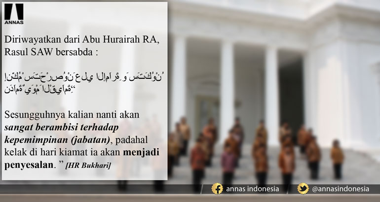 “Sesungguhnya kalian nanti akan sangat berambisi terhadap kepemimpinan (jabatan), padahal kelak di hari kiamat ia akan menjadi penyesalan. ” [HR Bukhari]