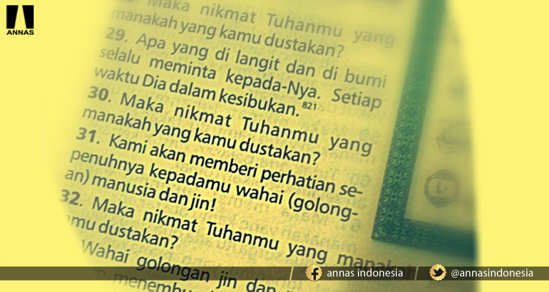 Artinya : "Maka Nikmat Tuhan-mu yg manakah yg 'Kamu Dustakan'?"